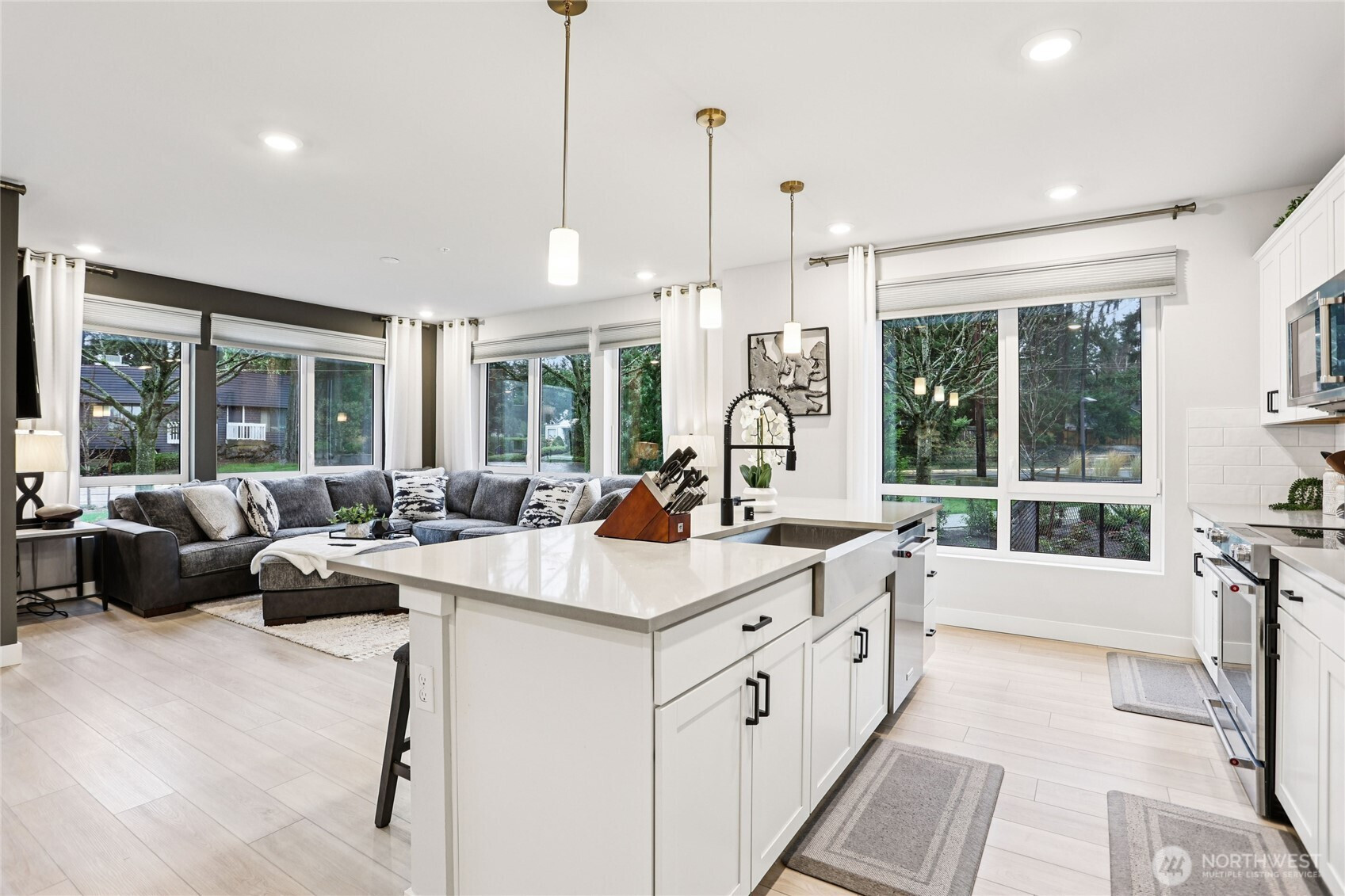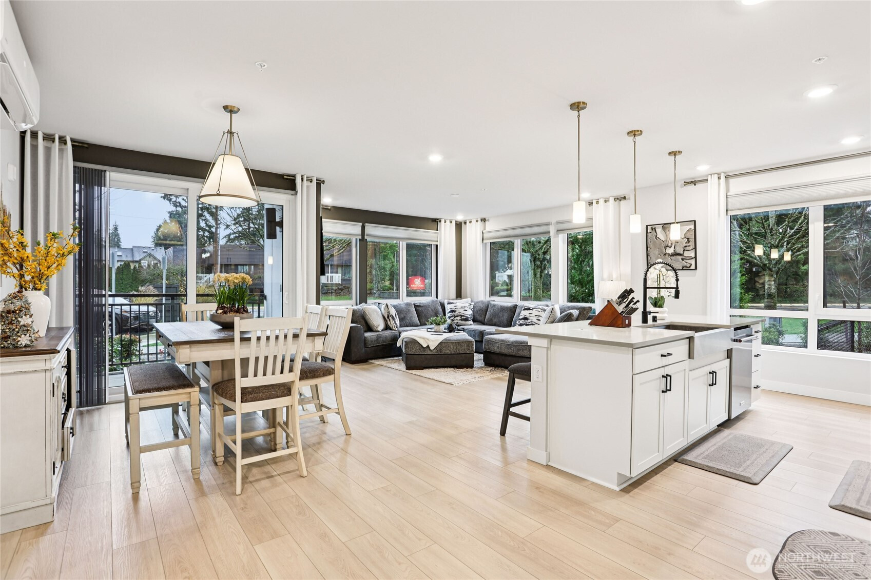 (503) 816-7074Experience bright, modern living in this corner ground-floor 2-bedroom, 1.75-bath unit in a convenient Shoreline location. Sunlight pours through large windows into open-concept living and dining areas, seamlessly flowing into a kitchen with quartz counters, a large island, and KitchenAid stainless steel appliances. The primary suite offers a walk-in closet and en-suite bath, while an additional office or flex space with French doors provides versatility. Enjoy a dedicated laundry room, one assigned garage space, secure building access, and easy reach to downtown, shopping, and dining.