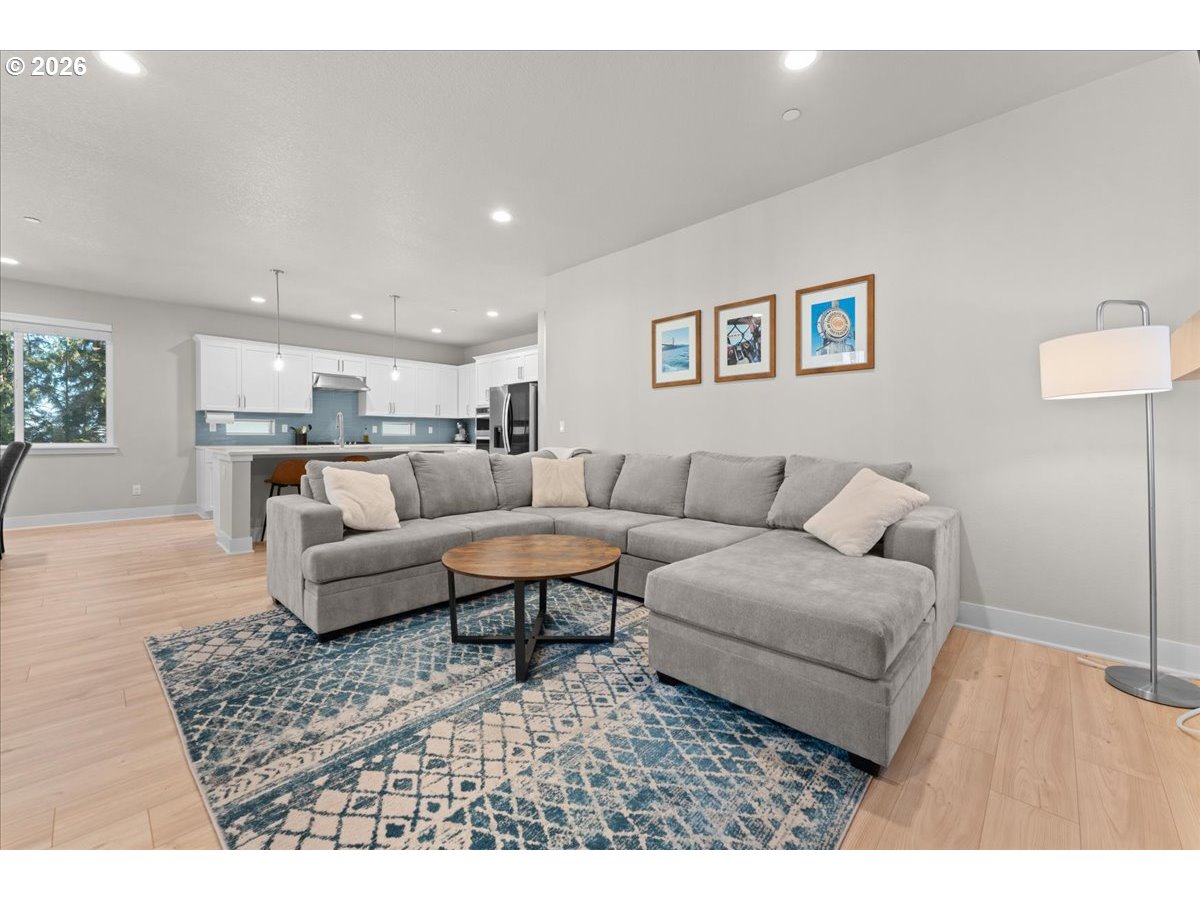 (503) 816-7074Backyard oasis on Cooper Mountain. Better-than-new 2022 Riverside at Woodland Hill home backing to lush green space with a fully landscaped, flat backyard designed for everyday living and easy entertaining. Approximately 2,510 sq ft with 4 bedrooms and 3 full baths, this light-filled home features an open-concept main level that frames serene outdoor views. The living room includes a gas fireplace, expansive windows, and flexible living/dining areas that flow into a stylish kitchen with quartz countertops, large island with eating bar and sink, tile backsplash, gas cooktop, Whirlpool oven, and energy-efficient stainless-steel appliances, including LG refrigerator.A main-floor bedroom with adjacent full bath provides excellent flexibility for guests, multigenerational living, or a home office. Upstairs, the expansive primary suite offers large windows, double sinks, soaking tub, separate shower, and private walk-in closet. Two additional bedrooms and a convenient laundry room with LG washer and dryer, tile flooring, and built-in cabinetry complete the upper level.Outside, a rare, usable backyard oasis features new turf, level lawn, fencing, upper deck, and lower concrete paver patio with dedicated entertaining space and retaining wall, all backing to green space for a private, tranquil setting. Multiple outdoor zones create ideal spots for morning coffee, summer gatherings, and quiet evenings at home, making the yard feel like an extension of the living space.Additional highlights include new waterproof Malibu Chestnut laminate flooring, built-in garage storage racks, forced-air heating, central air conditioning, and tankless water heater, all on an approximately 6,098 sq ft (.14 acre) lot in a Cooper Mountain single-family neighborhood close to parks, shopping, dining, Nike, Intel, and nature trails, with access to Cooper Mountain Elementary, Highland Park Middle, and Mountainside High School (buyer to verify schools).