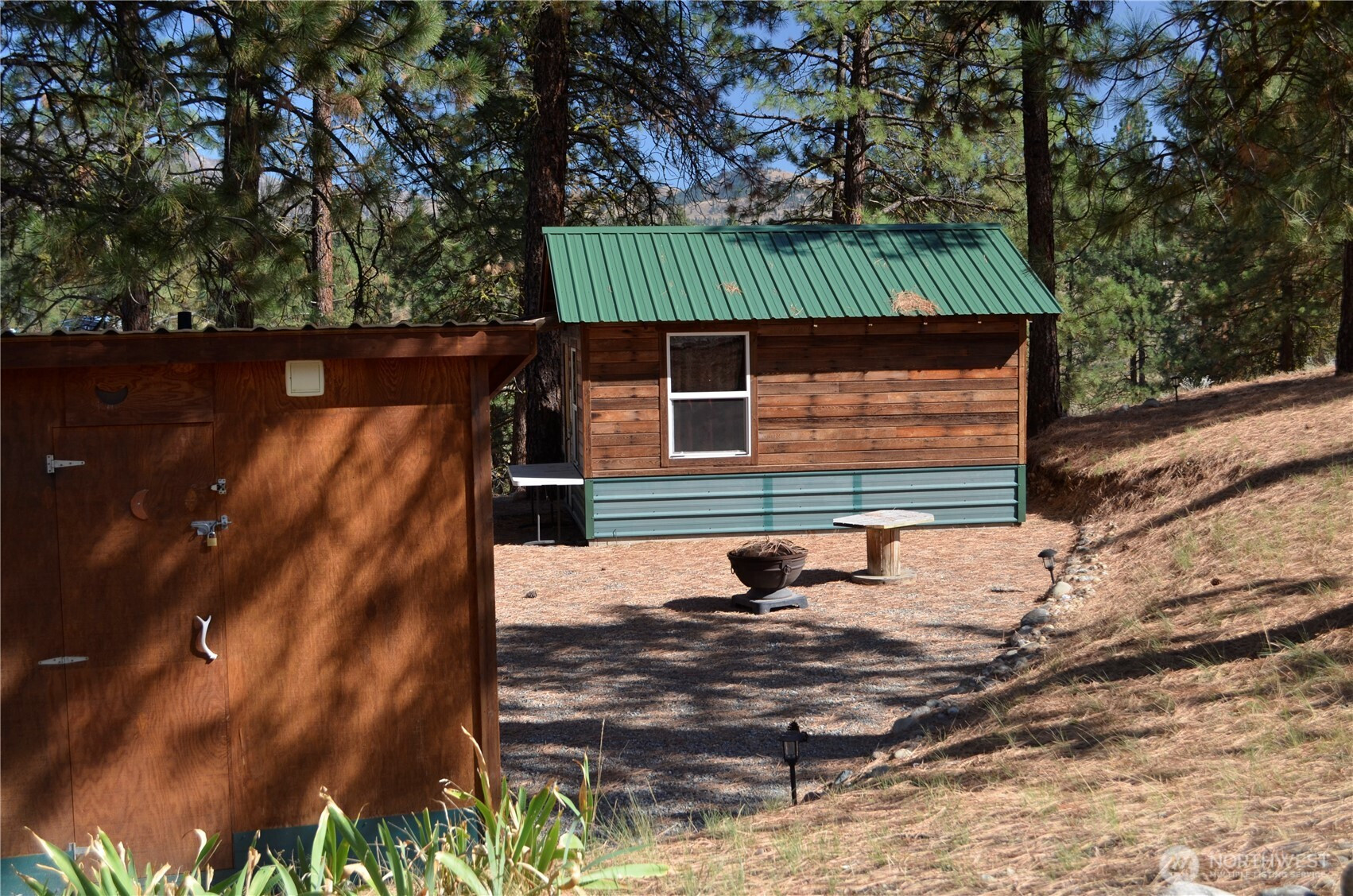 (503) 816-7074Dreaming of your Methow Valley get-a-way? Find it here on this secluded almost 2 acre lot near Winthrop ready for your improvements. Unique bunkhouse/one room cabin, detached bath house and storage shed already set up for you. Bunkhouse has hand-crafted queen sized murphy bed, reclaimed countertops, drawers and cupboards, plus sided with local old barnboards. Bathhouse is fully plumbed. New pressure tank and water filter system along with updated wiring in cabin and bath house. Lot has two other level areas for RV parking with hookups or for future building sites. Annual dues covers road maintenance, use of swimming pool and park amenities. MFG homes or "tiny home over 720 sq ft" allowed.